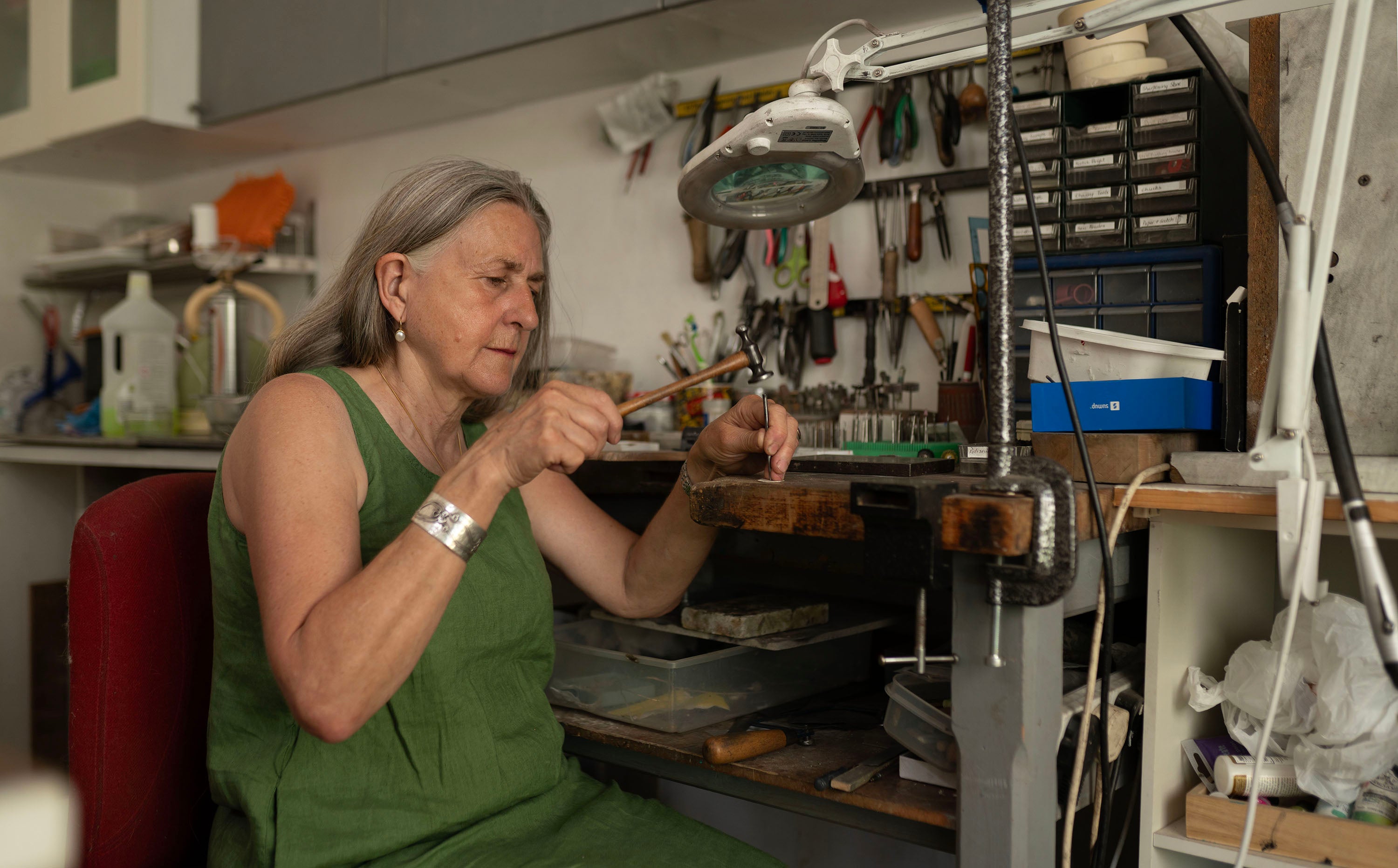 After graduating from The Birmingham School of Jewellery in 1983, her early collections saw her experiment with wood, plastics and metal. Her work has sold to shops and galleries around the world, including Liberty of London.