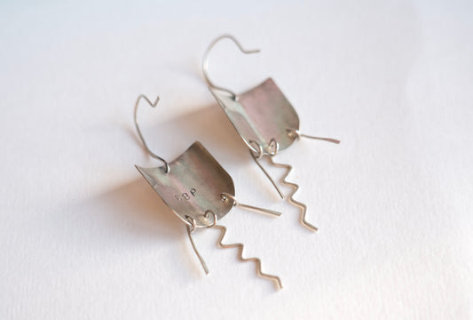 Hammered plate drop earrings
