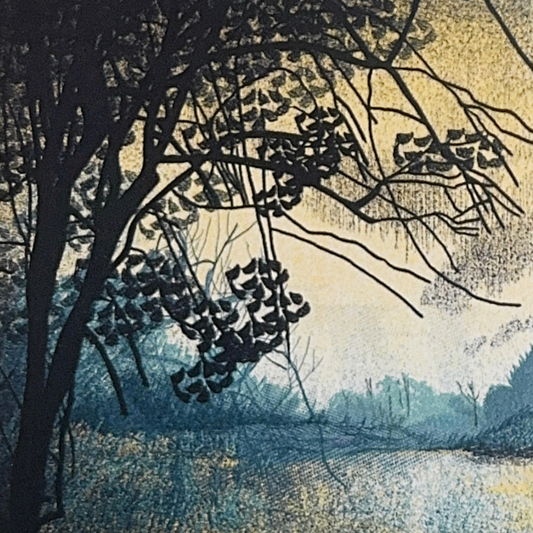 First studying printing at Worcester College, he has spent over 20 years mastering hand-pulled, multi-coloured screenprint whilst also inspiring generations of children through his busy teaching roles. Drawing on the landscapes for his inspiration, his prints can vary from three or four colours all the way to 20. Assiduously printing each layer by hand in his studio, Jon is able to conjure subtle new perspectives on our natural environment.
